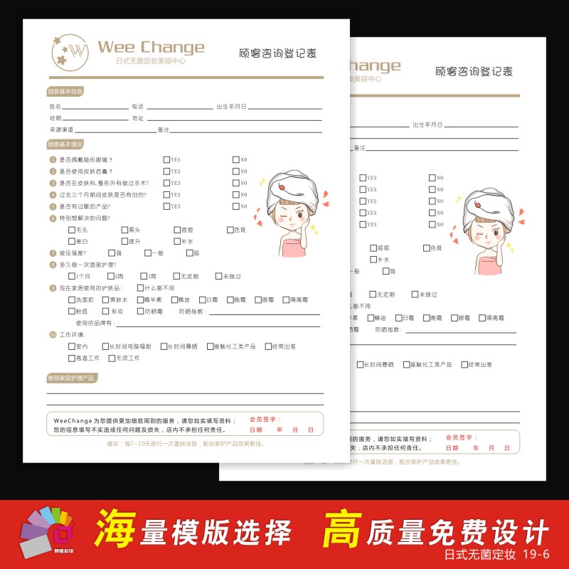 Skin Management Association staff Archives Registration Analysis Form Medical Cosmetic Beauty Institute Customer Registration Record Card Custom Print-Taobao