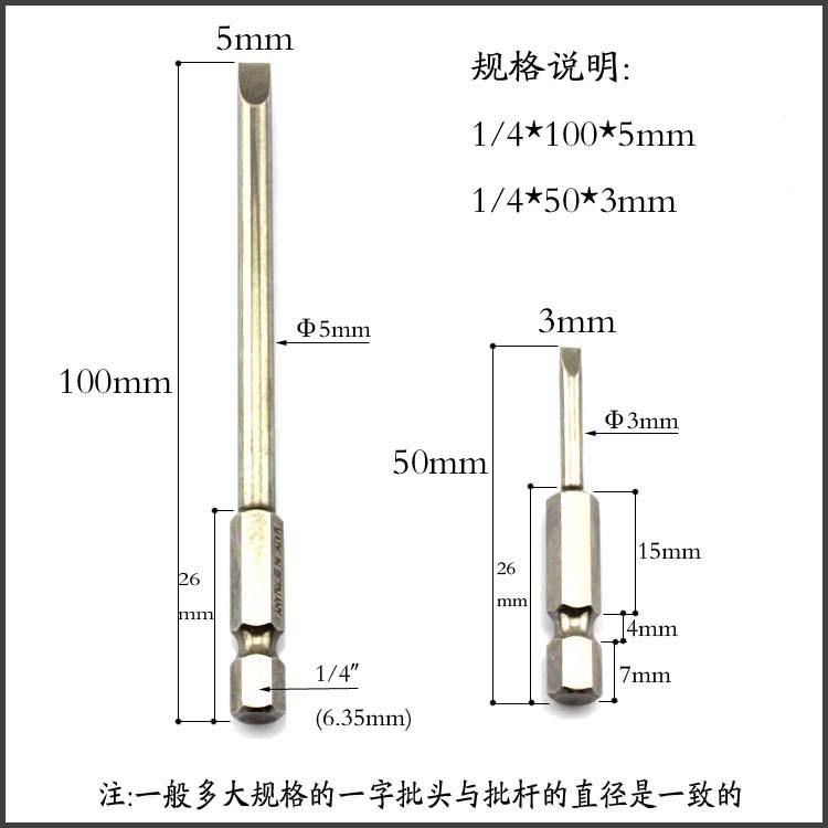 German hardened S2 material one-word screwdriver batch head set electric pneumatic screwdriver batch head wind batch mouth 100MM
