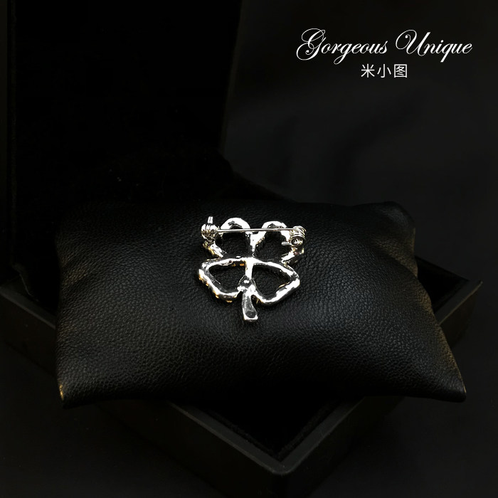Hollowed-out four-leaf straw button brooch brooch female chest flower jacket fashion atmosphere Don't pin decorative temperament accessories 210