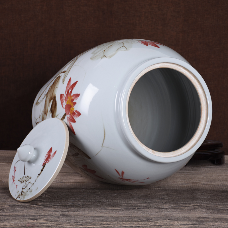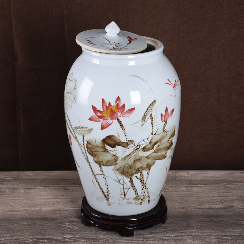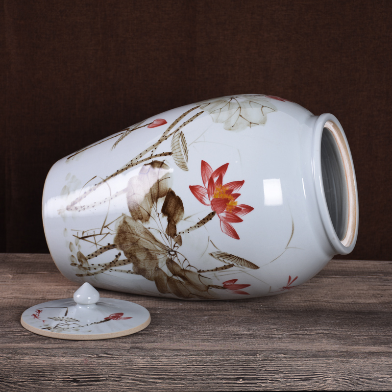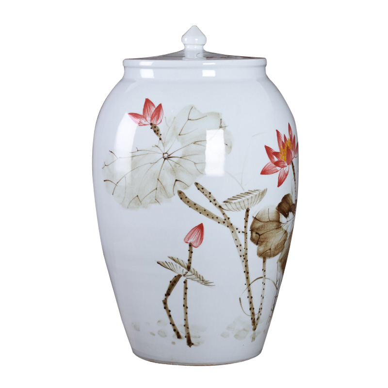 Jingdezhen hand-painted ceramic rice cylinder 50 kilograms of rice barrel oil cylinder water cylinder wine cylinder pickled meat cylinder high white porcelain clay fired