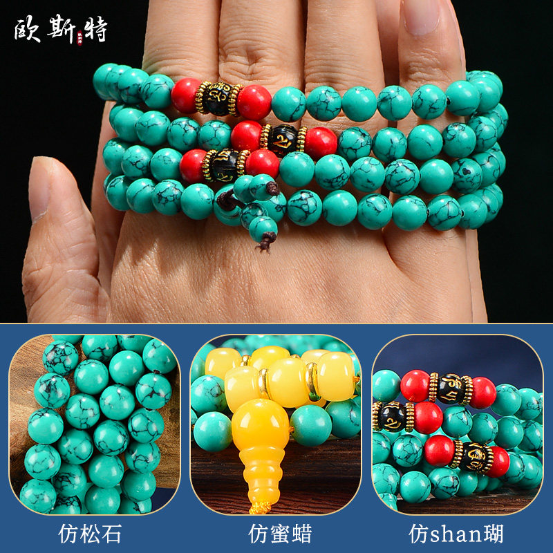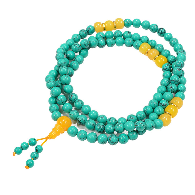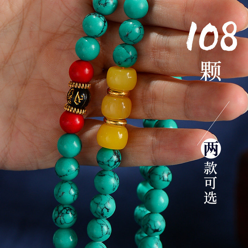 Turquoise Bracelet Ethnic Style Turquoise Bracelet Men's and Women's Necklace Accessories 108 Buddha Beads Decorative Jewelry