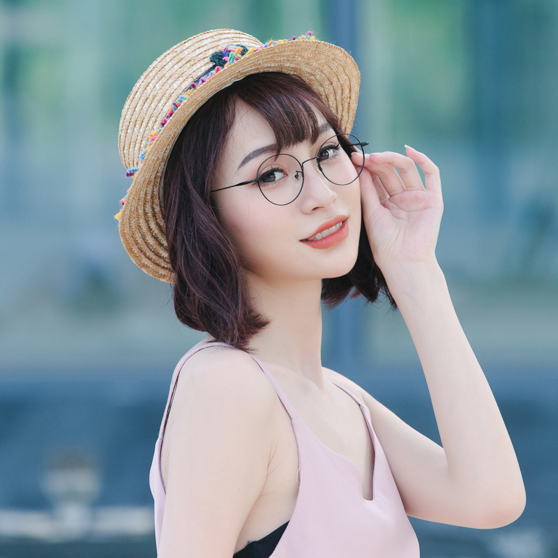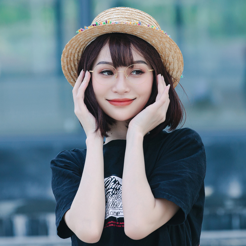 Glasses frame female Korean version of tide retro art ultra light pure titanium glasses frame men with flat light eyes optical myopia glasses