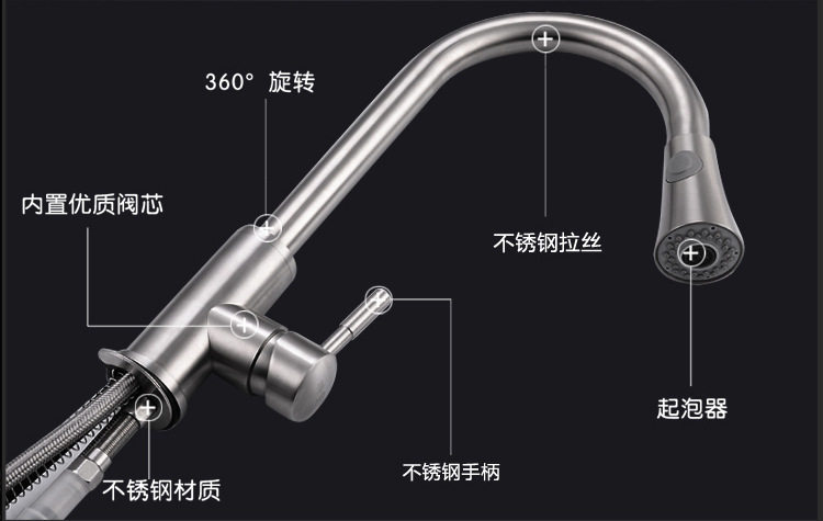 Brushed kitchen faucet pull multi-function water sink vegetable basin faucet 304 stainless steel faucet - Taobao