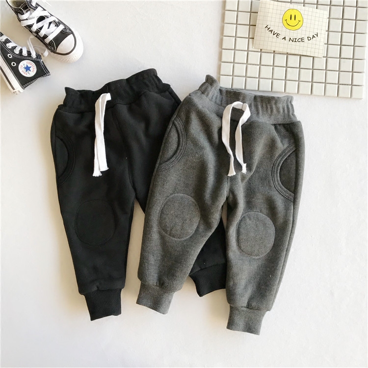 2020 winter style 3-year-old boys and 4 girls plus fleece pants children's thickened cotton pants children's patch casual pants sports pants