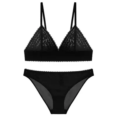 French non-steel ring underwear bralette sexy lace transparent comfortable breathable triangle cup ultra-thin underwear set