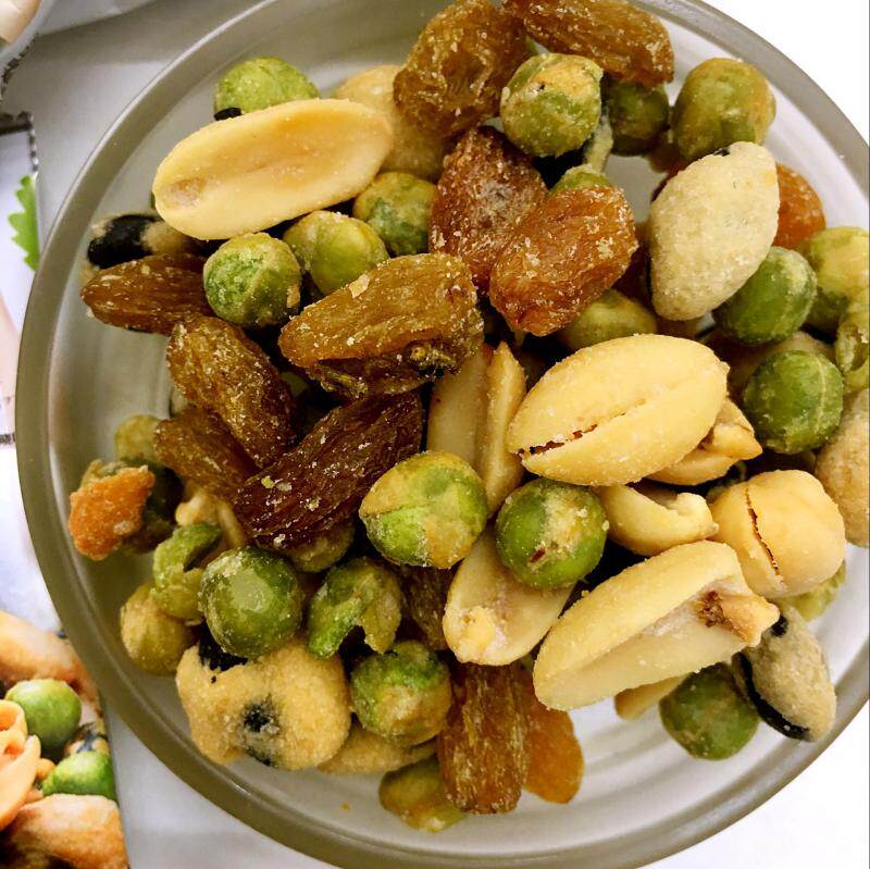Peas Black soybeans Peanuts Cashews Raisins Vegetable oil Starch White sugar Wheat flour Edible salt Crab roe seasoning Brewed soy sauce Acid hydrolyzed vegetable protein liquid Yeast