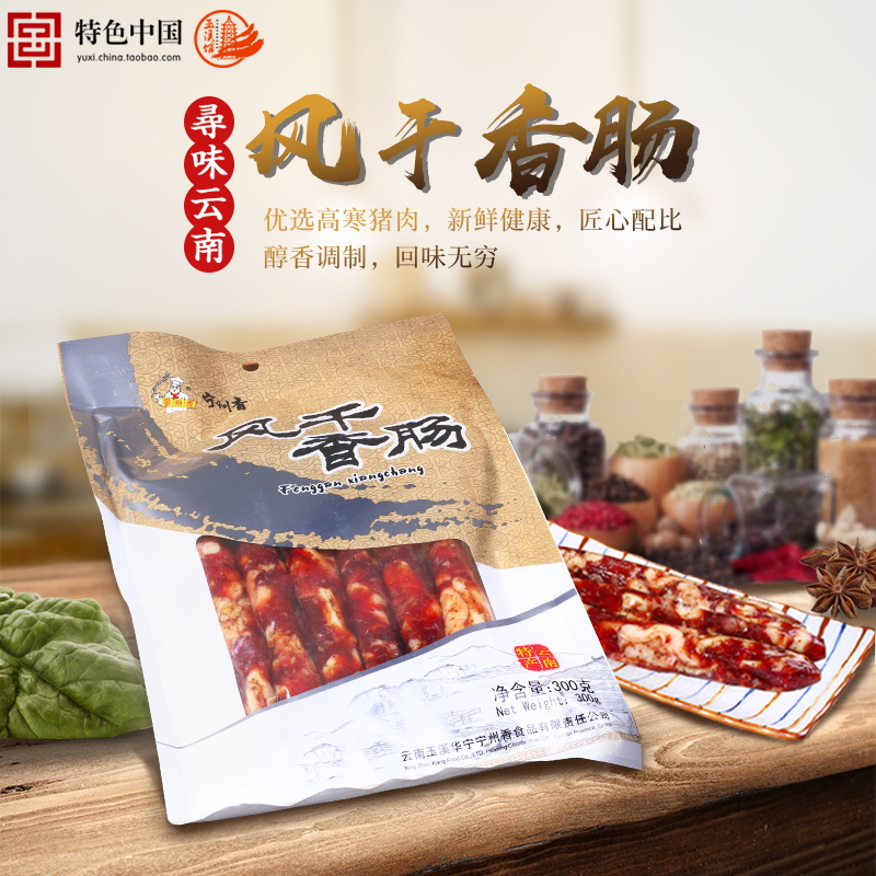 Yunnan specialty Yuxi Huaning Ningzhou fragrant dried sausage 300g farm homemade Yunnan sausage sausage
