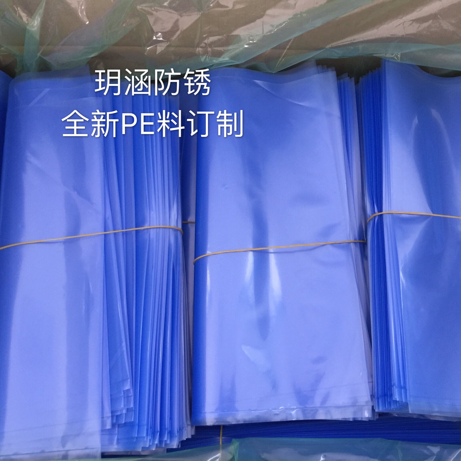 VCI Gas Phase Rust Prevention Bag Inside Fold Bags Flat Pockets Blue Carton Lining PE Plastic Bags
