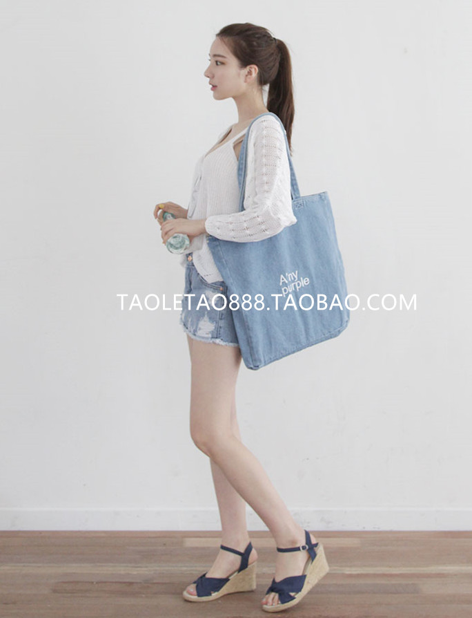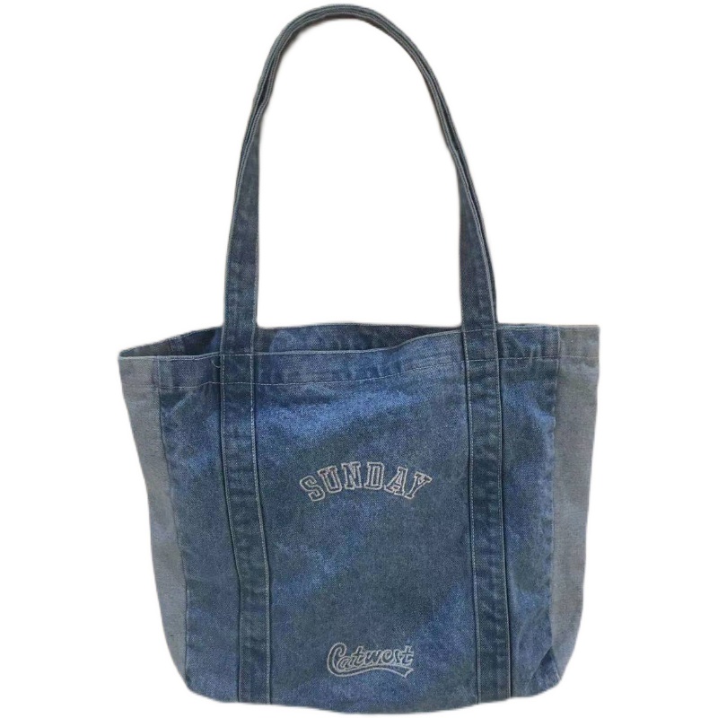Japanese denim shoulder bag large shopping bag mother bag ins canvas bag student school bag portable remedial bag commuting