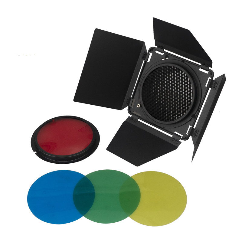 LED video light Baorong bayonet four-leaf light shield with honeycomb color film hood flash universal four-page board