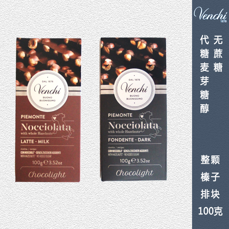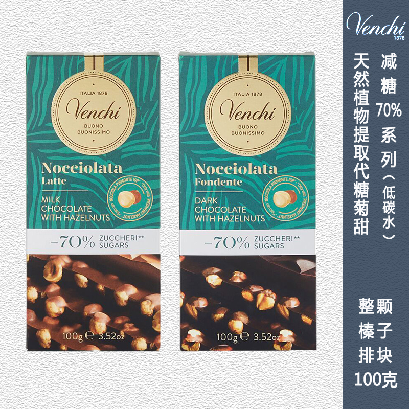 Italian imported Venchi smell Chee sugar-free hazelnut milk dark chocolate Row block no sucrose 100g