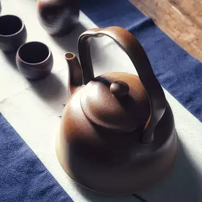 Health pottery pot High temperature resistant teapot Black crystal furnace special boiled water boiled tea pottery pot Coarse pottery Purple sand teapot sand pot ceramics