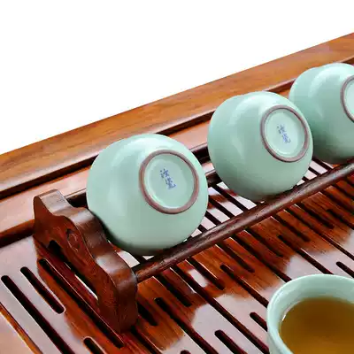 Xingong chicken wing wood tea set Double row tea solid wood cup holder Tea ceremony Kung Fu tea cup holder decoration accessories Tea tray cold cup holder