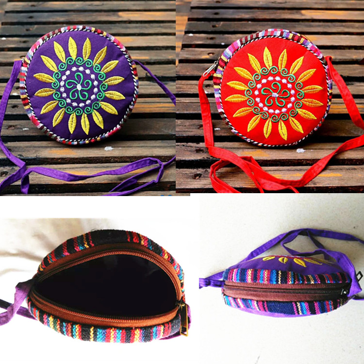 Yunnan Ethnic Wind Featured Circular Package Two-faced Embroidery Small Slanted Satchel Embroidered Mobile Phone Bag ZERO wallet