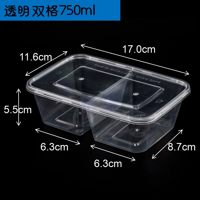Qiyue 650 750 1000ml Disposable Double-compartment Packing Box Sub-compartment Fast Food Box Two-compartment Takeaway Transparent Cover