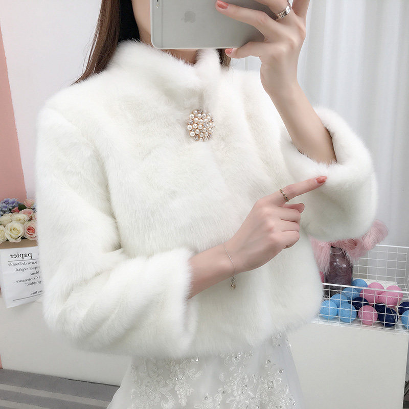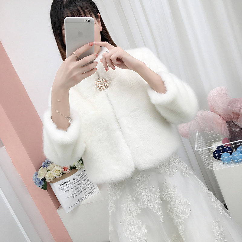 Wedding shawl winter with wedding cheongsam bride wedding wool shawl winter coat dress thickened mink velvet winter