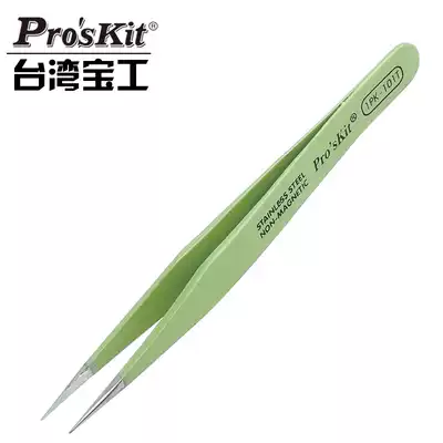 Baogong stainless steel anti-magnetic long pointed tweezers set thin pointed bird's nest hair insulation anti-static tweezers elbow