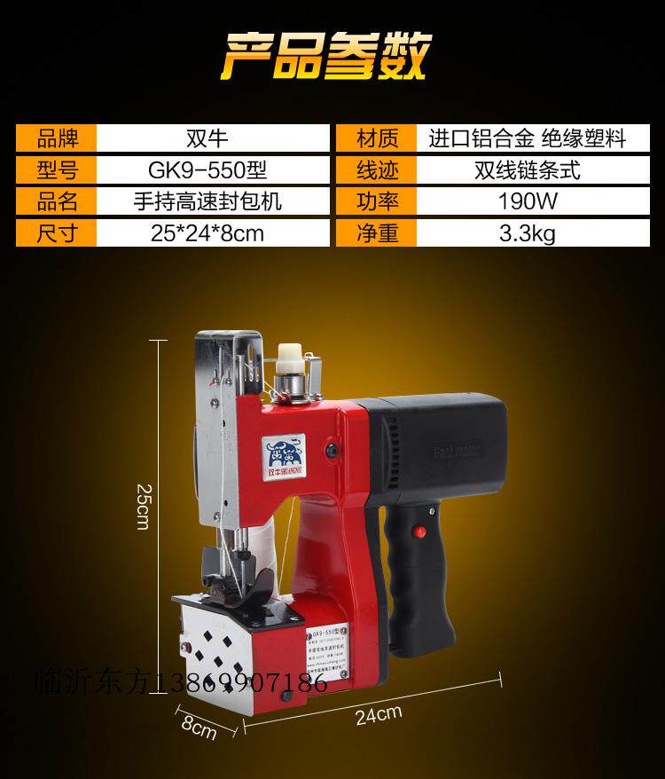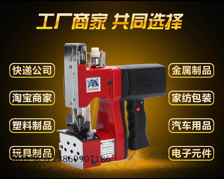Double cow sewing machine portable electric gun type bag sealing machine palm sealing machine household GK9-550 double line type new