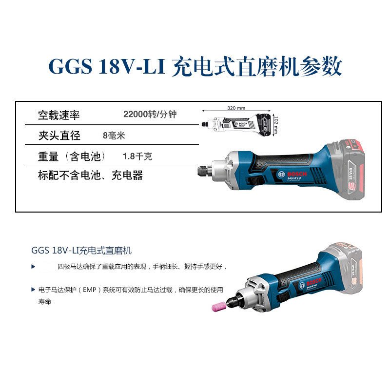 Original BOSCH BOSCH power tools 18V LITHIUM rechargeable straight mill polishing machine GGS18V-LI