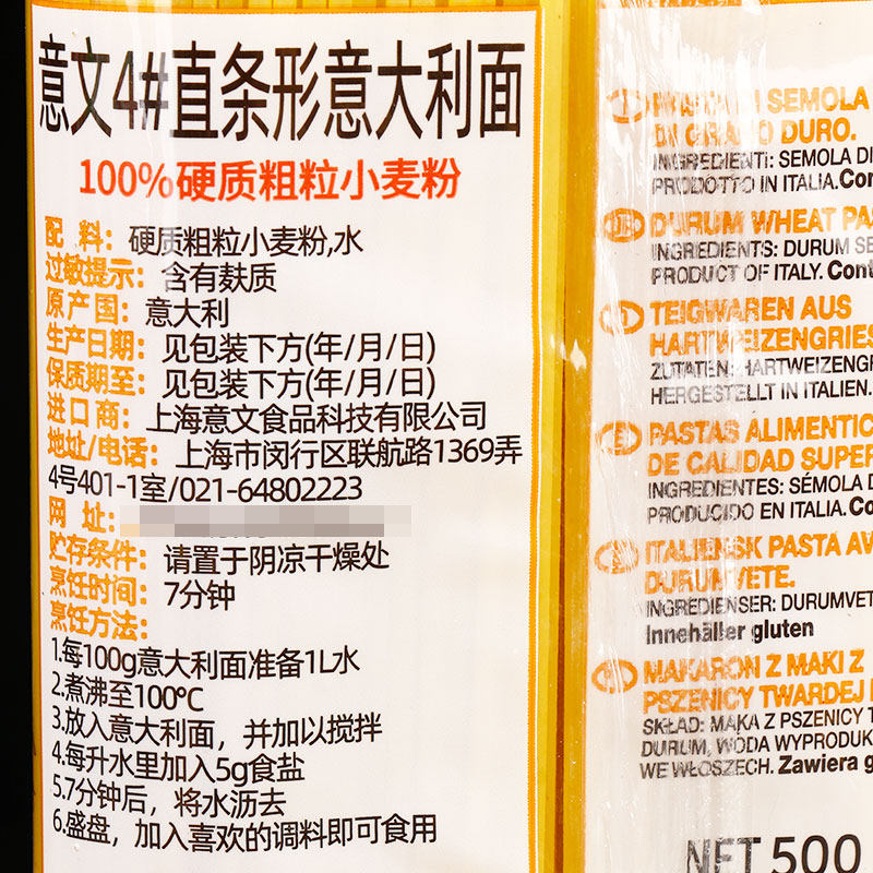 Italy imported Italian 4# pasta 500g * 5 bags (25 servings) Italy imported Italian 4# pasta 500 g * 3 bags (15 servings) (protein 13g 100g) Italian 8 # straight pasta 500 g * 3 bags. Italian imported Italian pasta 500g *4 bags (20 servings) Italy imported Italian pasta 500g *10 bags (50 servings) Italy imported Italian whole wheat straight noodles 500 g * 3 bags (15 servings). Italian screw surface 500 g *3 bags imported from Italy (15 servings). (Protein 13g 100g) Italian 99# screw surface 500g *3 bags