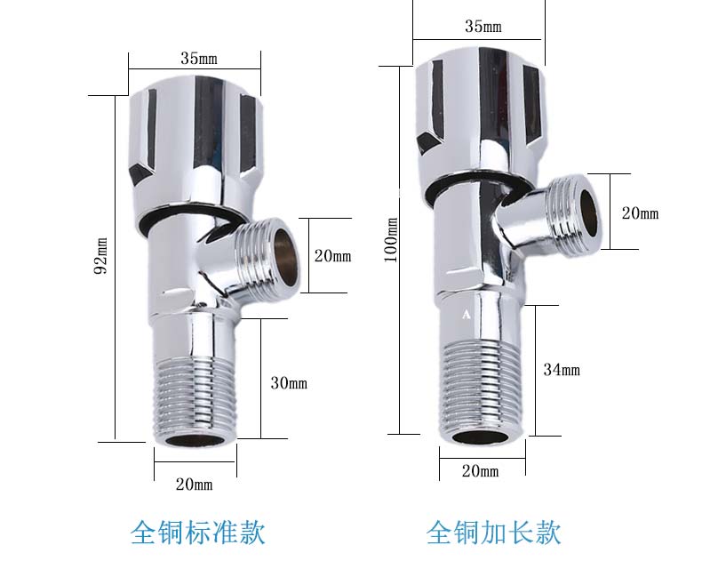 4-point thickened and lengthened explosion-proof angle valve into the wall lengthened water heater cold and hot universal four-point switch eight-character valve