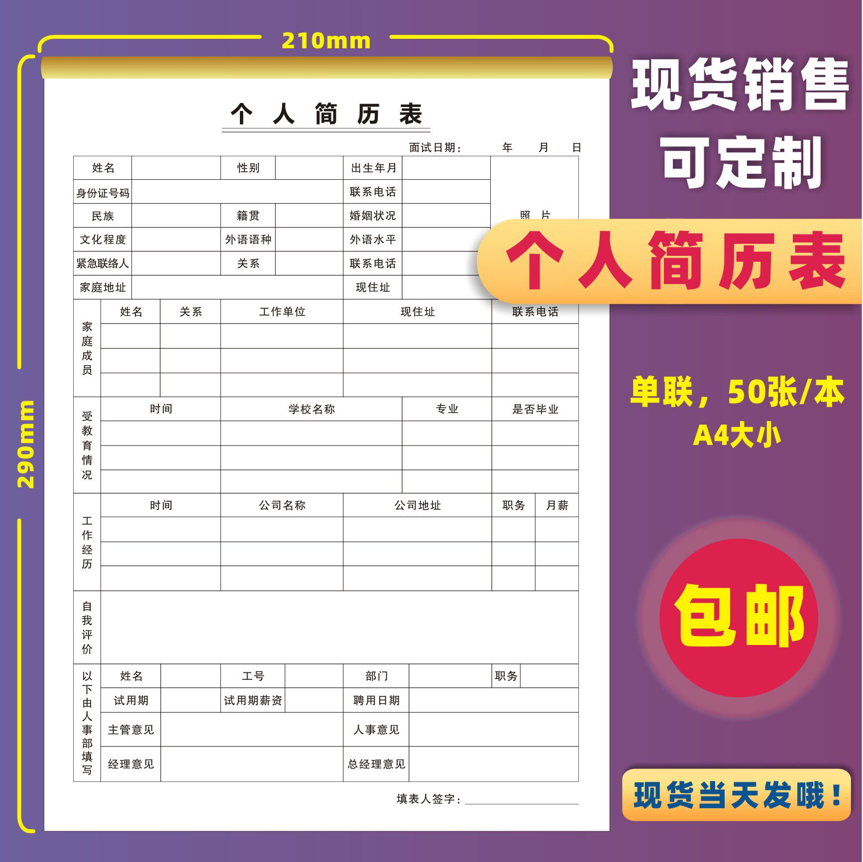 Employee Onboarding Registration Form Personal Resume Form Resignation Single Departure Application Form Interview Application Form Salary Issuance Form