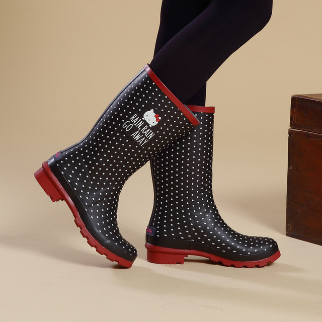 Kuru Mira X Hello Kitty joint Rain Rain Go Away point clear rain boots (black)