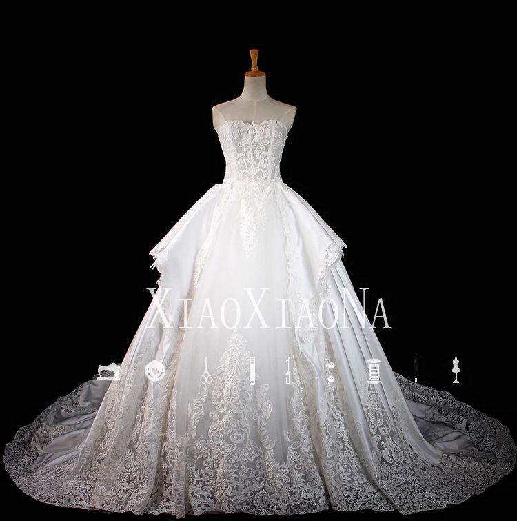 Wedding Dress 2021 New Long Tail Bandeau Princess Dream Sweet Satin Luxury Sexy Backless Bride