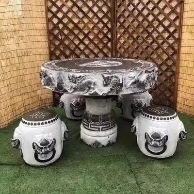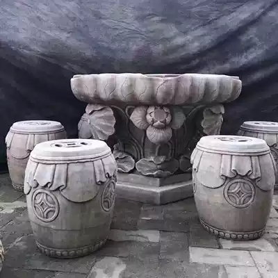 Stone carving Stone table Stone stool Courtyard Garden Stone table and chair Stone antique round table Marble outdoor stone table Household ornaments