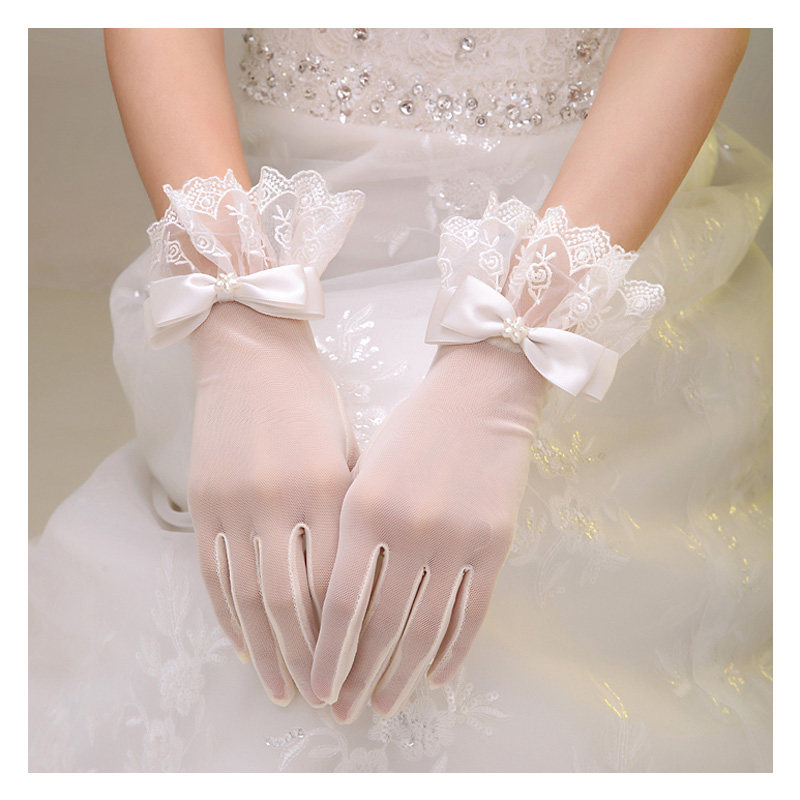 Wedding Gloves Lace 2109 New Short Korean Wedding Spring and Autumn Simple Satin Wedding Bridal Gloves Female