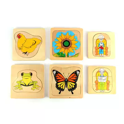 Montesori teaching aids animal and plant multi-layer puzzle growth story process development butterfly frog hen 1-3 year old toy