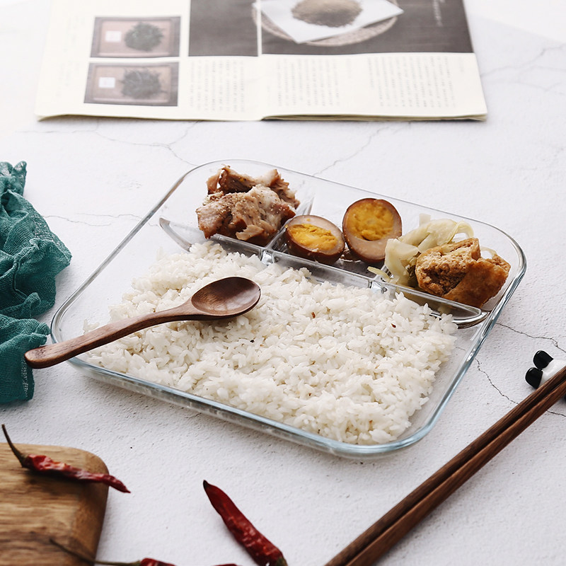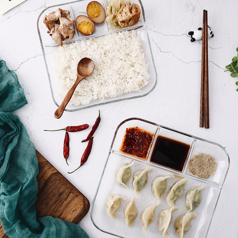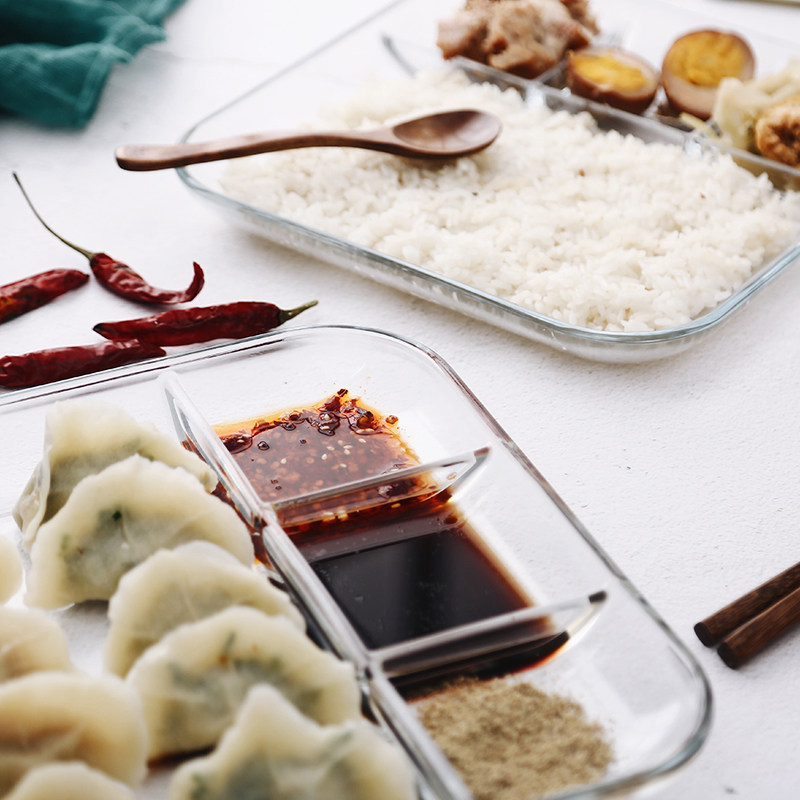 Heat-resistant glass compartment dumpling plate multi-function compartment microwave fast food plate steaming plate with vinegar sauce plate dumpling plate