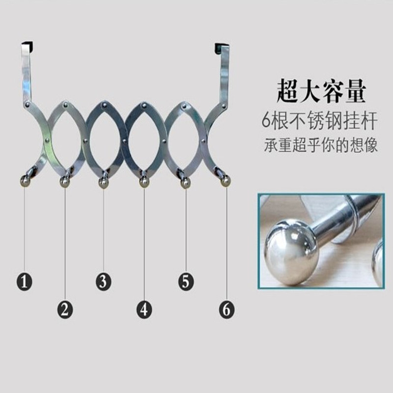 New household multi-functional metal door rear folding storage hook retractable non-marking nail-free coat and hat hanger door hanging