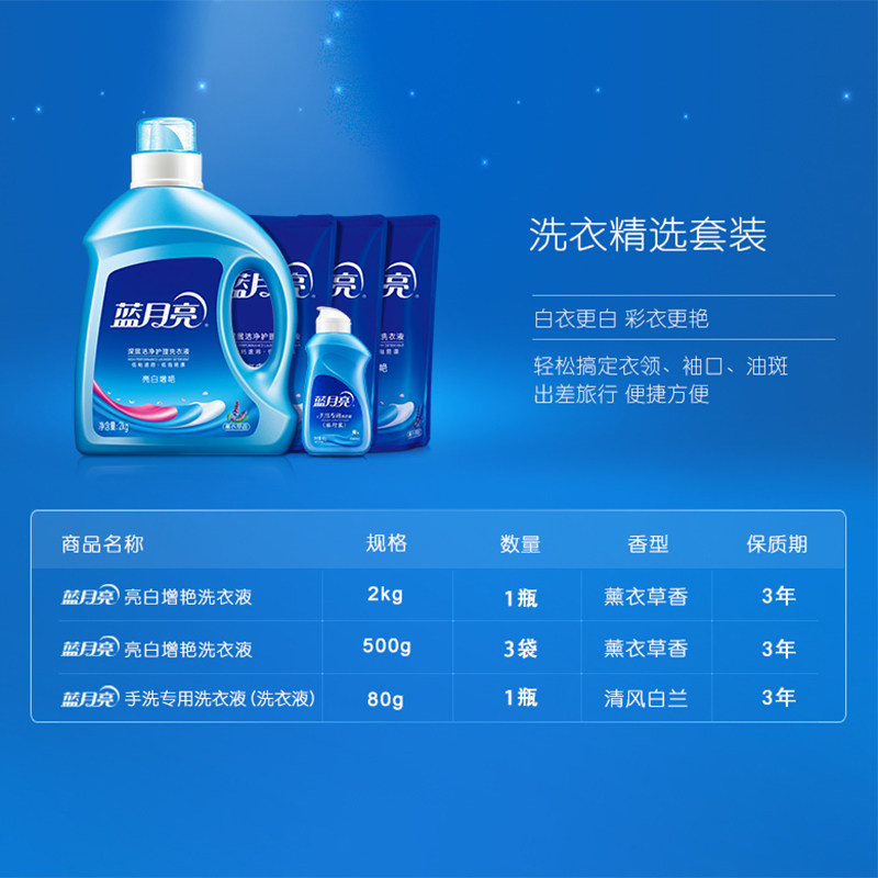 Blue Moon Bright White Brightening Lavender Fragrant Laundry Detergent Bottle + Bag Replenishment Liquid + Hand Wash Special Travel Suit