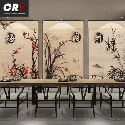 CR9 landscape printing bamboo curtain roller curtain shade shade shade porch background decoration partition Chinese tea room artistic conception feng shui