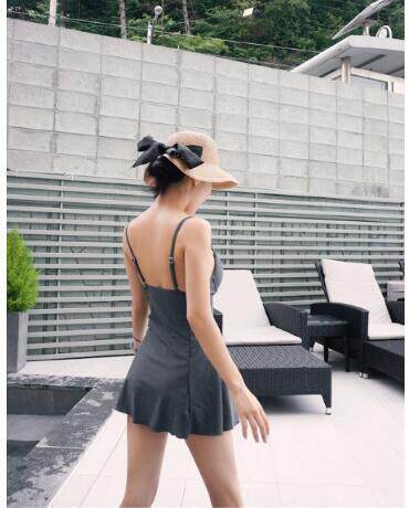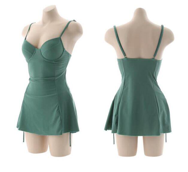 2021 Spa Holiday Original Steel Ring Small Chest Gathering Harness Conservative pure Color Chater Slim One-piece Swimsuit Woman