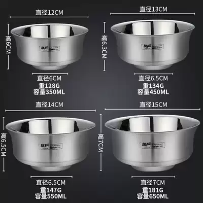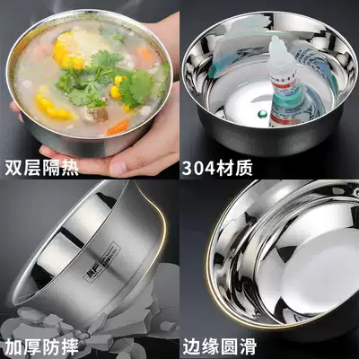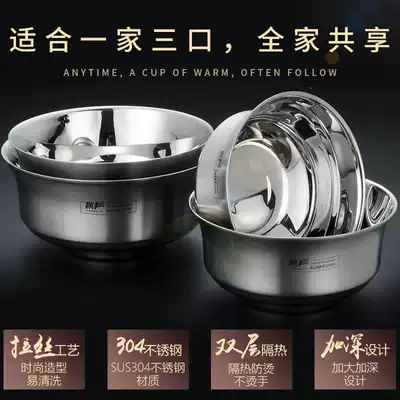 304 stainless steel bowl single double-layer anti-hot insulation household children's baby rice bowl anti-drop tableware set to eat