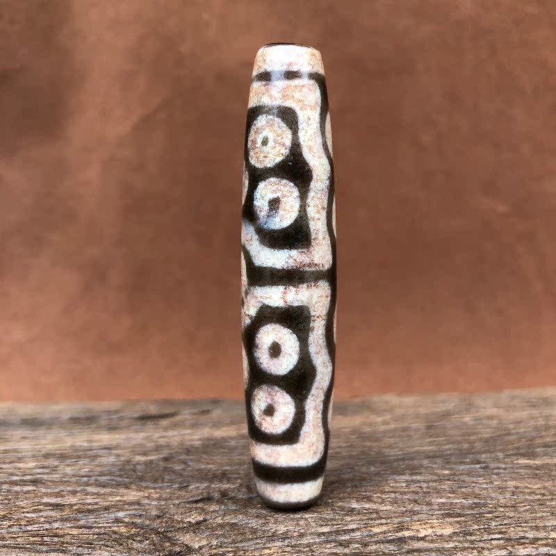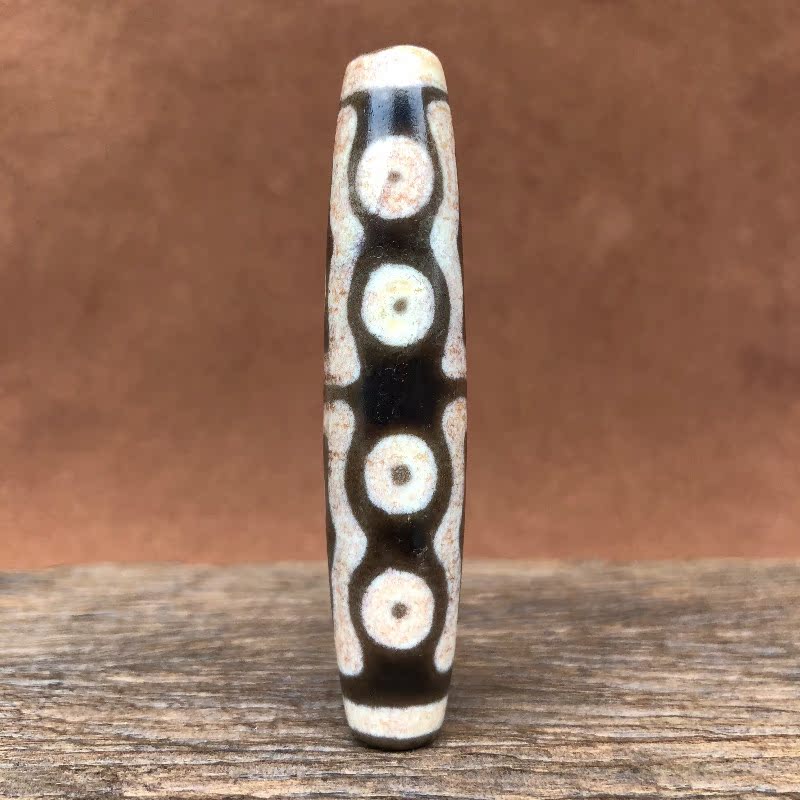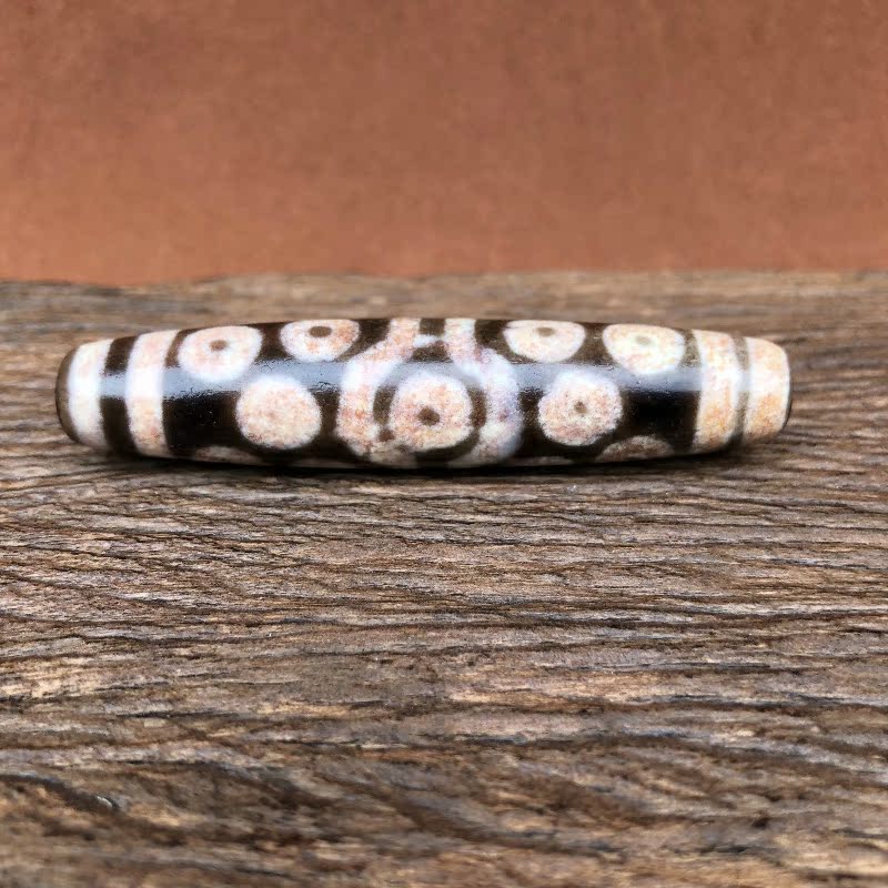 Tibetan Dzi Tibetan Fifteen-Eyed Dzi Authentic to Pure Natural Cinnabar Wrapped Pulp Thick weathering clear