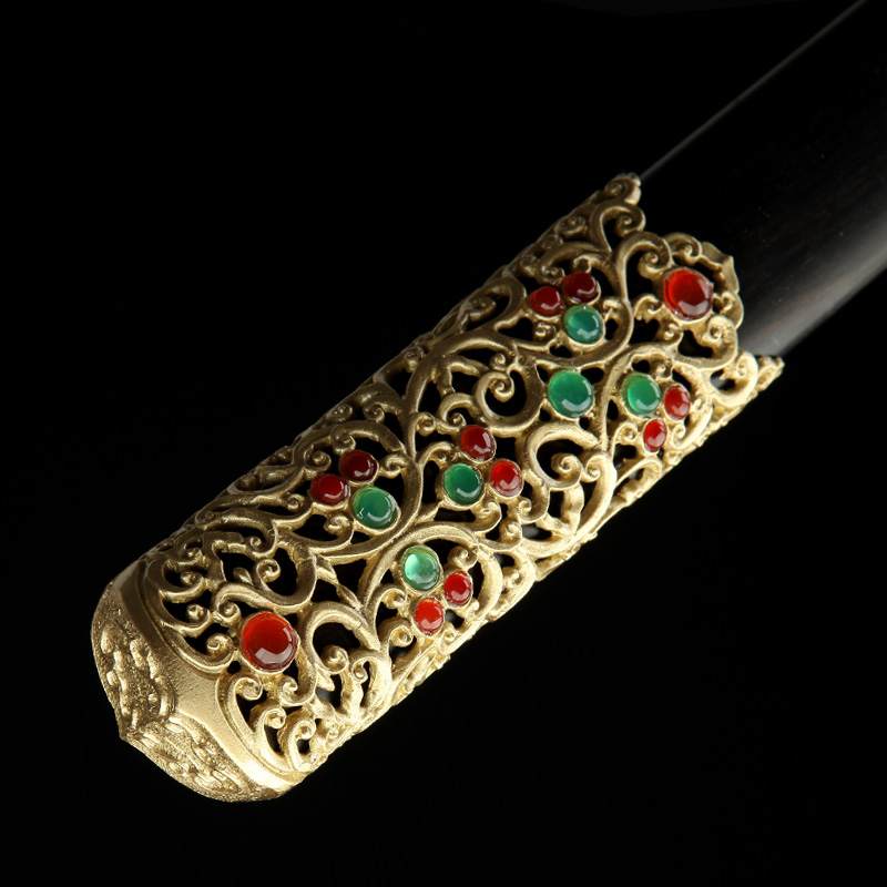 Longquan Shenglong Knife Sword Pure Hand-hollow fine carving pattern Tangtang Knife Long Fan Fabric Collection