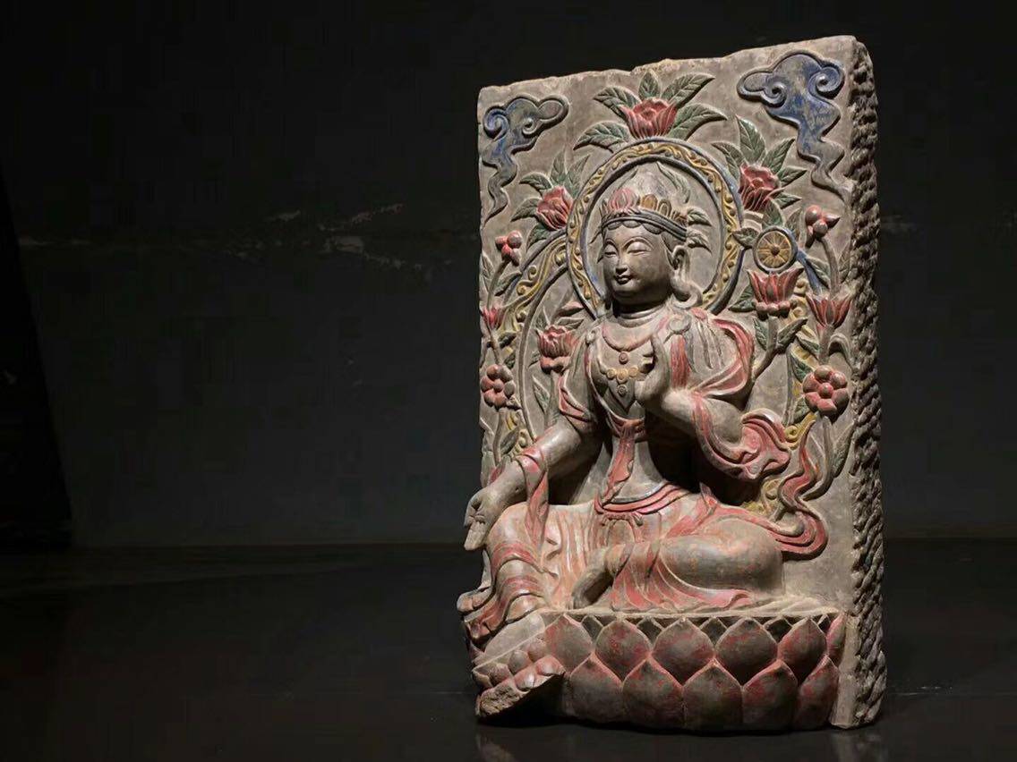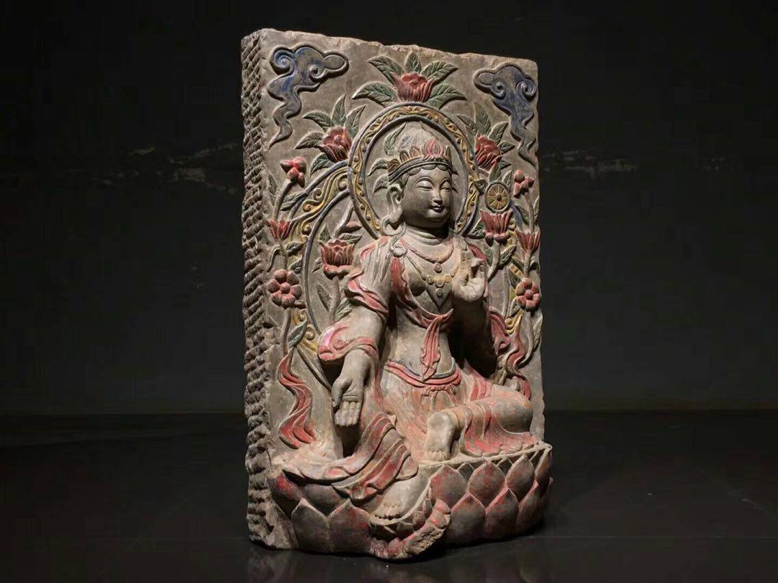 (Tang rhymes ... at ease with Guanyin BodhisattBodhisattBodhisattva) The green stone painted high 61 meters wide 40 40 thick 20 cm