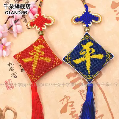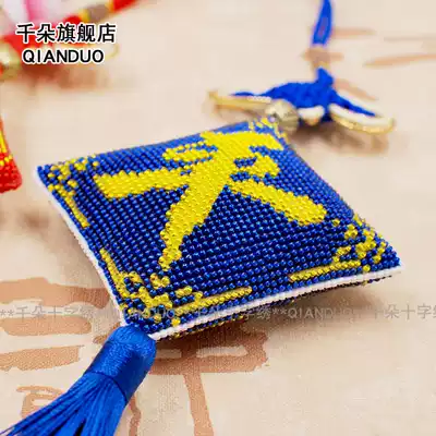Thousand flowers printed Ping An Fu car pendant Cross stitch new personalized beaded small pendant Royal blue Ping An Fu car pendant