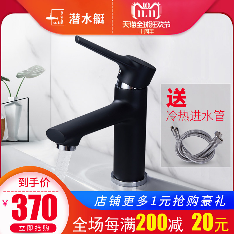 Submarine powder room bathroom hot and cold water wash basin washbasin countertop basin basin white black faucet