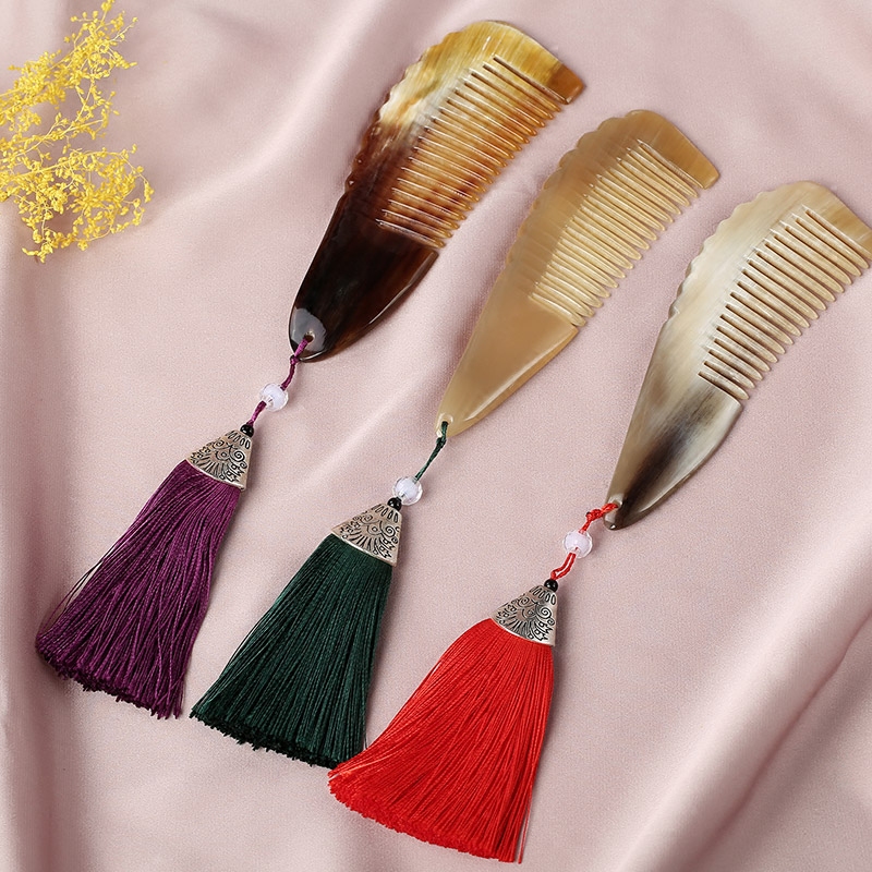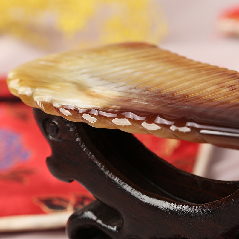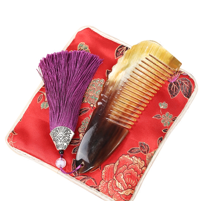 Yak horn natural horn comb Anti-static anti-hair loss curly hair comb Large size wooden comb Mirror comb set