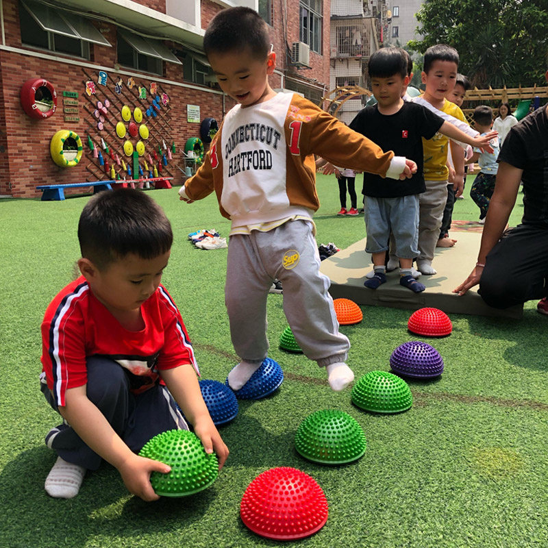 Kindergarten children's sensory integration training equipment balance toy semi-circle air cushion massage tactile durian ball crossing the river stone