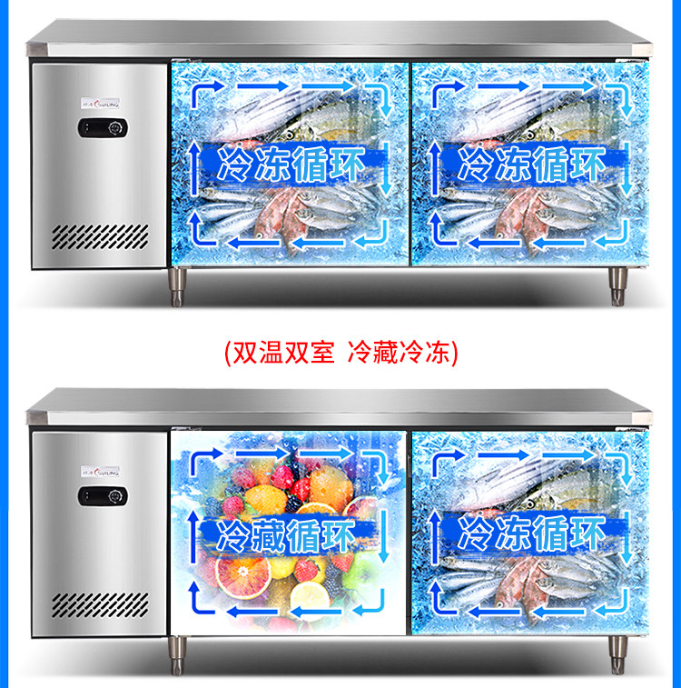 Suiling commercial freezer stainless steel kitchen cabinet console 15 m horizontal refrigeration workbench refrigerator