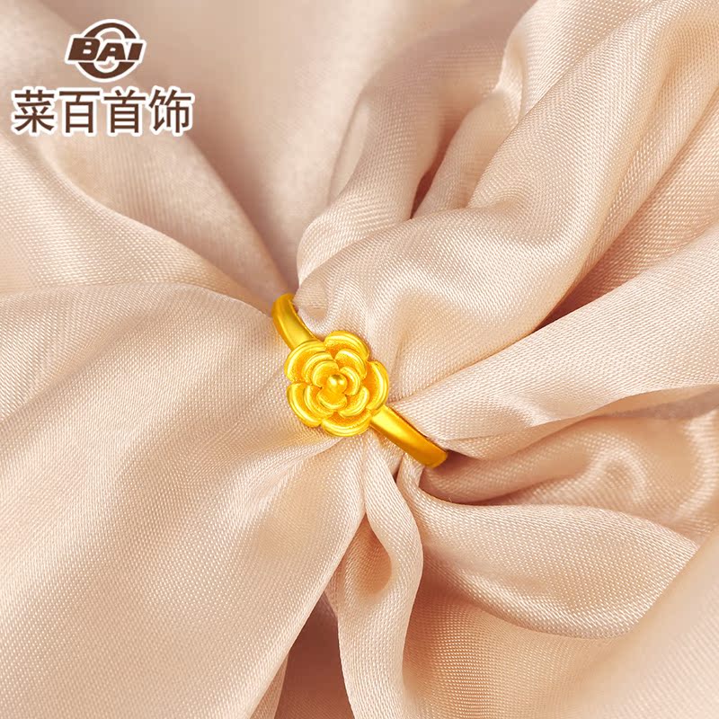 Vegetable 100 Jewelry Gold Ring Foot Golden Mountain Tea Flower Gold Ring Live Circle Ring Female