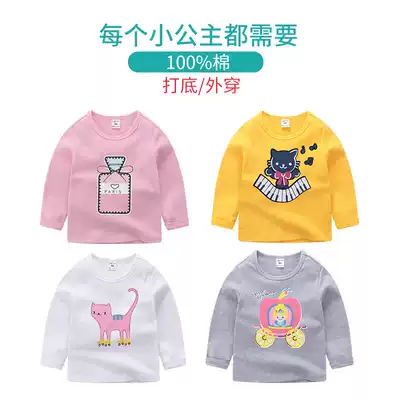 Girls Long Sleeve T-Shirt 2021 Spring and Autumn New Children Cotton Interior Clothes Top Baby Baby Round Neck 3