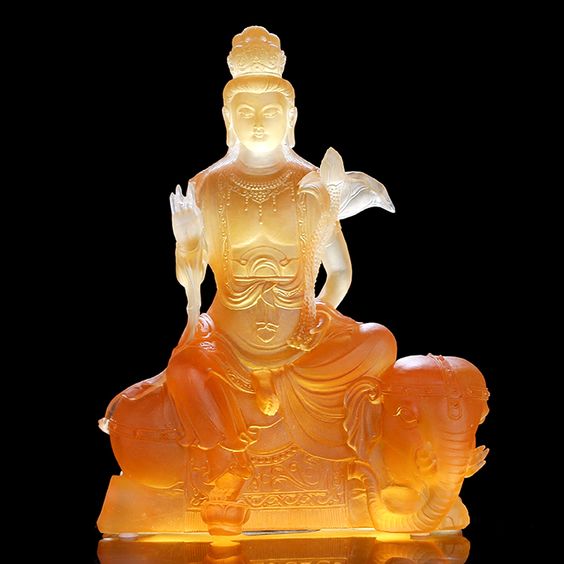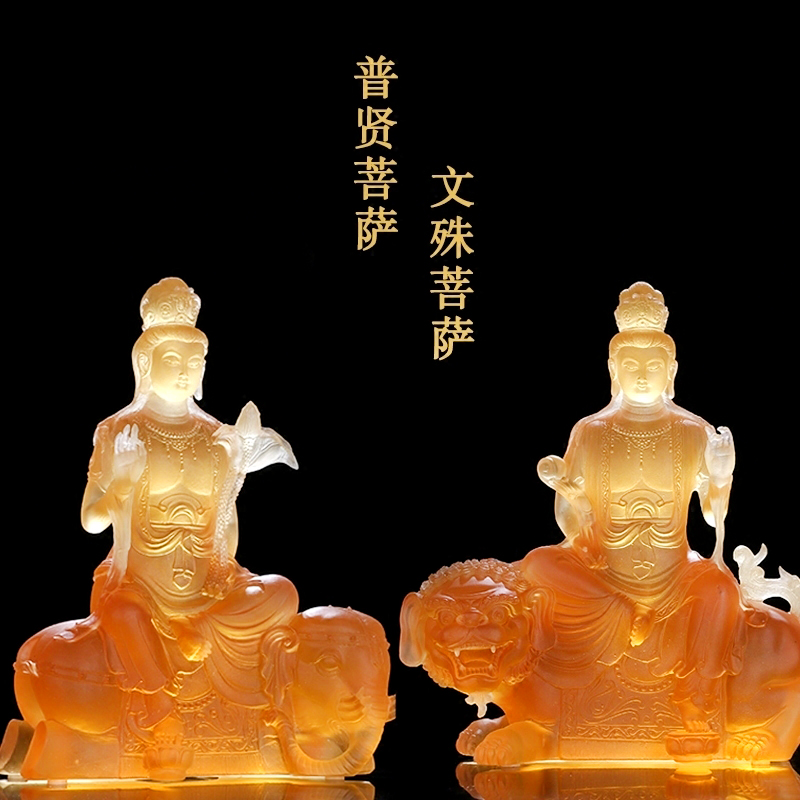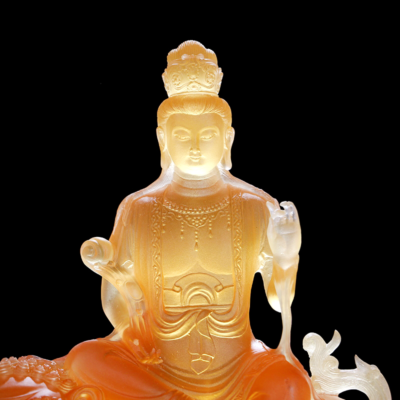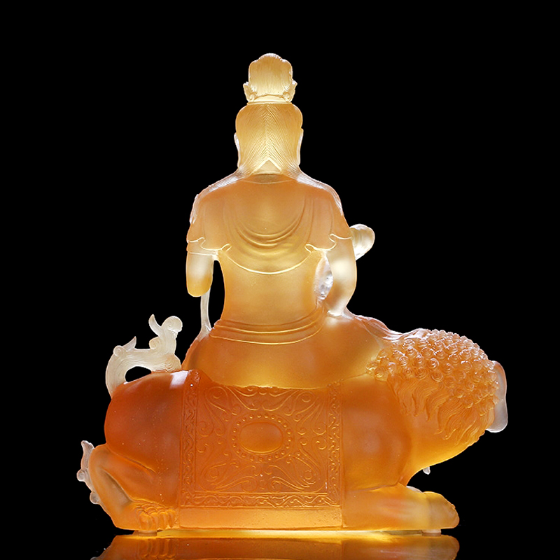 Wutai Mountain Manjusri Bodhisattva Glass Buddha Statue Feng Shui Ornament Consecrates Great Wisdom Manjusri Puxian Buddha Statue Huayan Three Saints