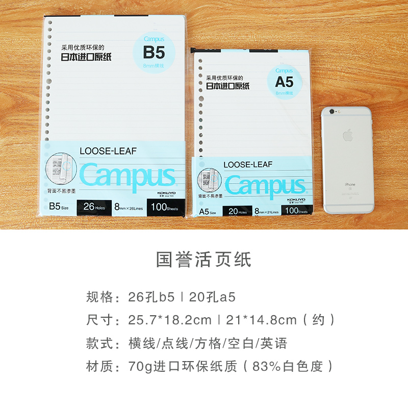 26 holes b5-horizontal line 100 sheets 26 holes b5-point line 50 sheets 26 holes b5-panes 50 sheets 26 holes b5-blank 50 sheets 26 holes b5-English 50 sheets 20 holes a