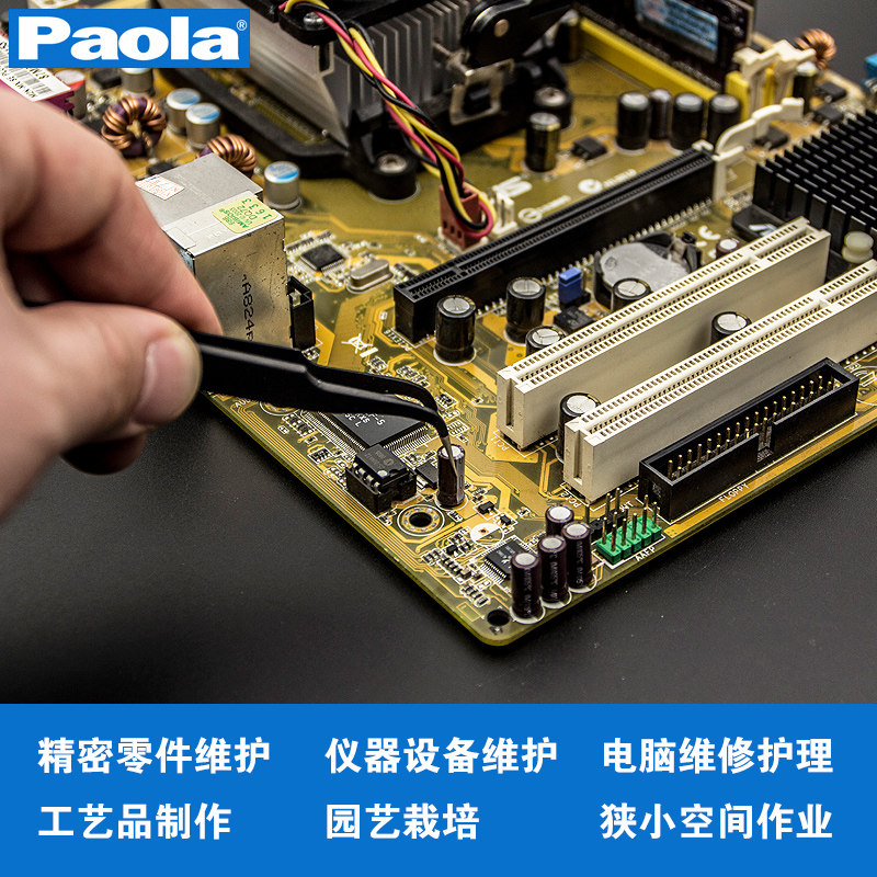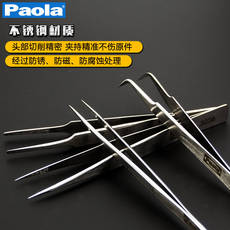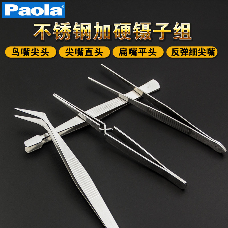 Paula stainless steel anti-static anti-magnetic elbow tweezers round tip thickened extension anti-skid straight head flat mouth repair tool